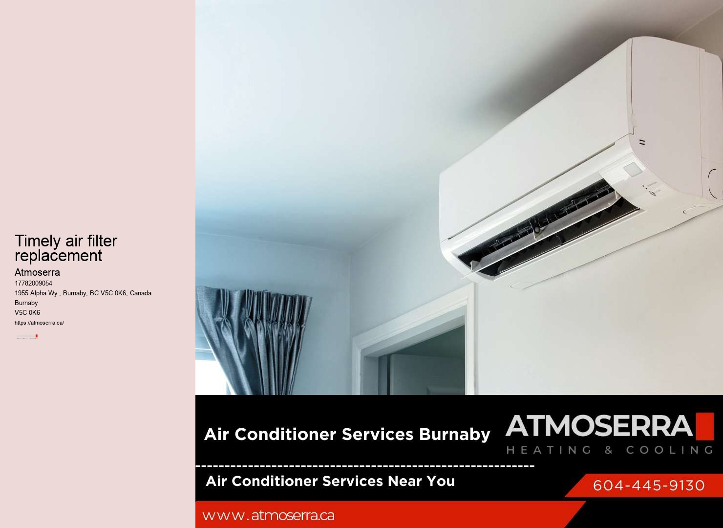 That's why they offer comprehensive solutions that include air quality improvement, humidity control, and energy-efficient upgrades. Ultimately, ATMOSERRA's transparent approach fosters a partnership between the service provider and you, the homeowner. In essence, predictive maintenance transforms the way you care for your HVAC system. Read more about Timely air filter replacement here These are just snippets of how Atmoserra's solutions are making a tangible difference in Burnaby, enhancing lives, and boosting business environments.