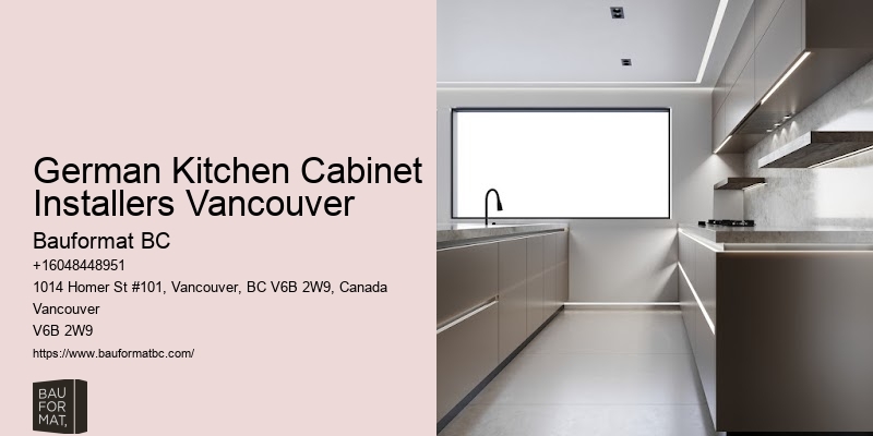 With Bauformat BC, it's all about creating a kitchen that works for you. Custom cabinet design Find out more German Kitchen Cabinet Installers Vancouver here Moreover, they're pioneers in incorporating advanced materials and technologies. Bauformat Bc has pushed the envelope with customizable organization systems. Learn more about Bauformat BC here. As you customize your kitchen with Bauformat Bc's innovative solutions, it's also important to consider their commitment to sustainability and quality assurance.