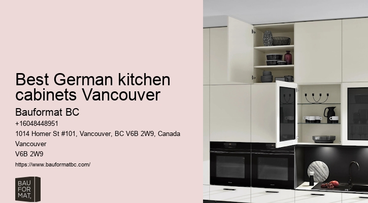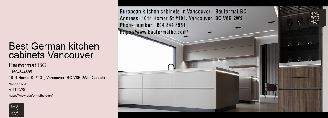 Bauformat BC's expert team is there to guide you through every step, from initial design to final installation, ensuring your vision comes to life exactly as you imagined it. German kitchen installers This prevents moisture damage, which is crucial for maintaining the cabinet's integrity and appearance. You won't find yourself replacing or repairing these cabinets any time soon, thanks to their robust construction and high-quality materials. German engineering shines through with their precision-crafted components, ensuring your kitchen isn't just a space to cook, but a realm of innovation and style.