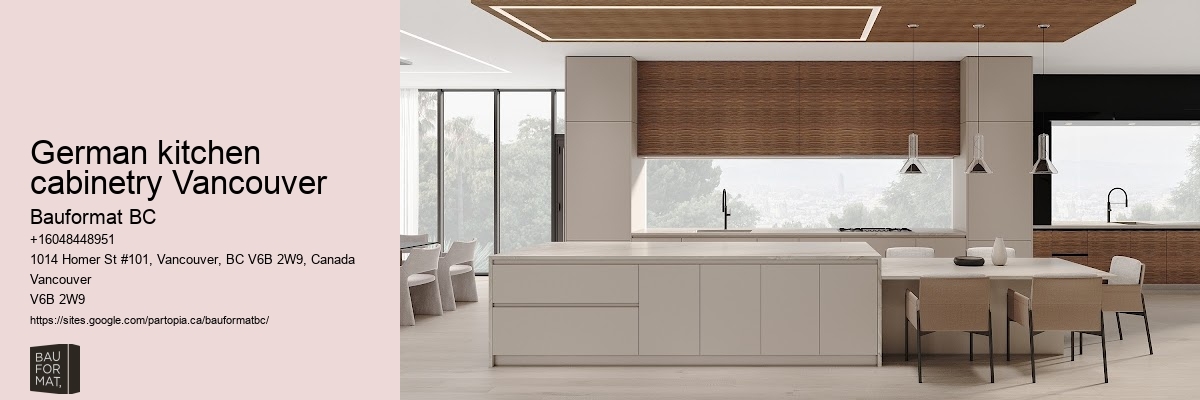 After this consultation, you'll receive a personalized quote. German engineering isn't just about the look. Versatile kitchen cabinets What's more, Bauformat BC understands that your kitchen isn't just for show; it's a functional space where you cook, dine, and gather with loved ones. They're not just creating cabinets; they're crafting experiences that transform your kitchen into a hub of beauty and efficiency.