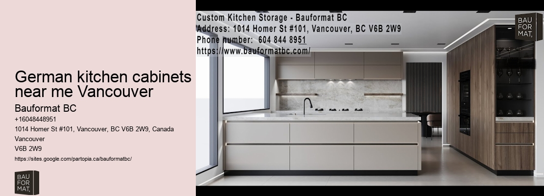 Functionality plays a key role in the design process. As you dive into their approach, you'll find it's not just about creating stunning spaces but also about ensuring those spaces contribute positively to the planet. Custom-designed kitchen cabinets You're not just getting top-notch German engineering in your kitchen cabinets; you're also signing up for a renovation experience that's as seamless and efficient as the products themselves. Vancouver With a palette of finishes and materials that range from classic woods to high-gloss, contemporary hues, there's something to match your personal style and bring your culinary space to life.