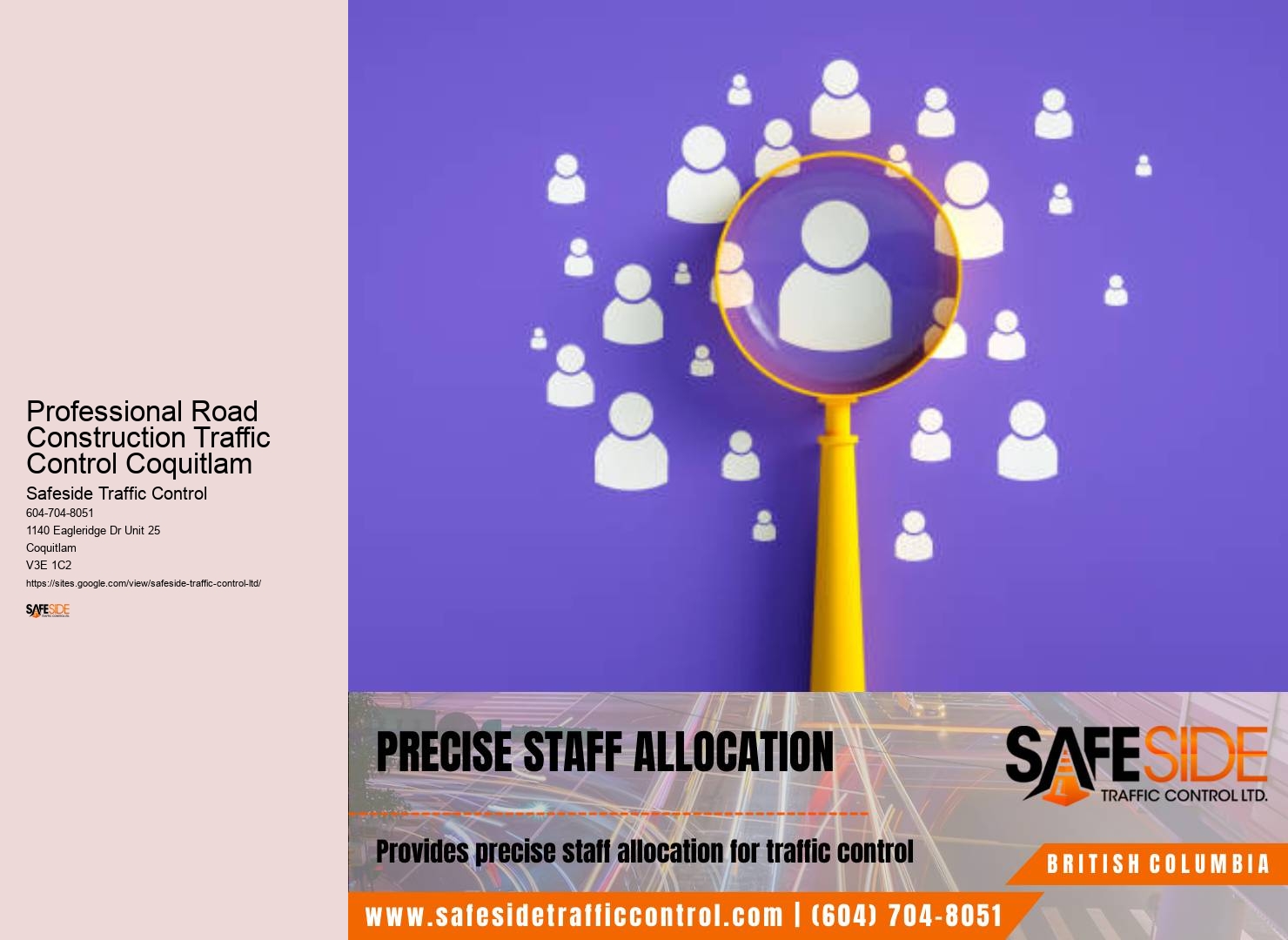 We're not just about managing traffic; we're about building a safer, more connected community in Professional Road Construction Traffic Control Coquitlam. Safeside Traffic Control Ltd provides updates on roadworks and suggests alternative routes to minimize your travel time. They've even embraced the power of data analytics to predict traffic flow patterns, helping to plan road works and events with minimal disruption to your daily commute. Road safety You're not just a passenger on this journey; you're a part of a safer, smarter traffic ecosystem we're building together.